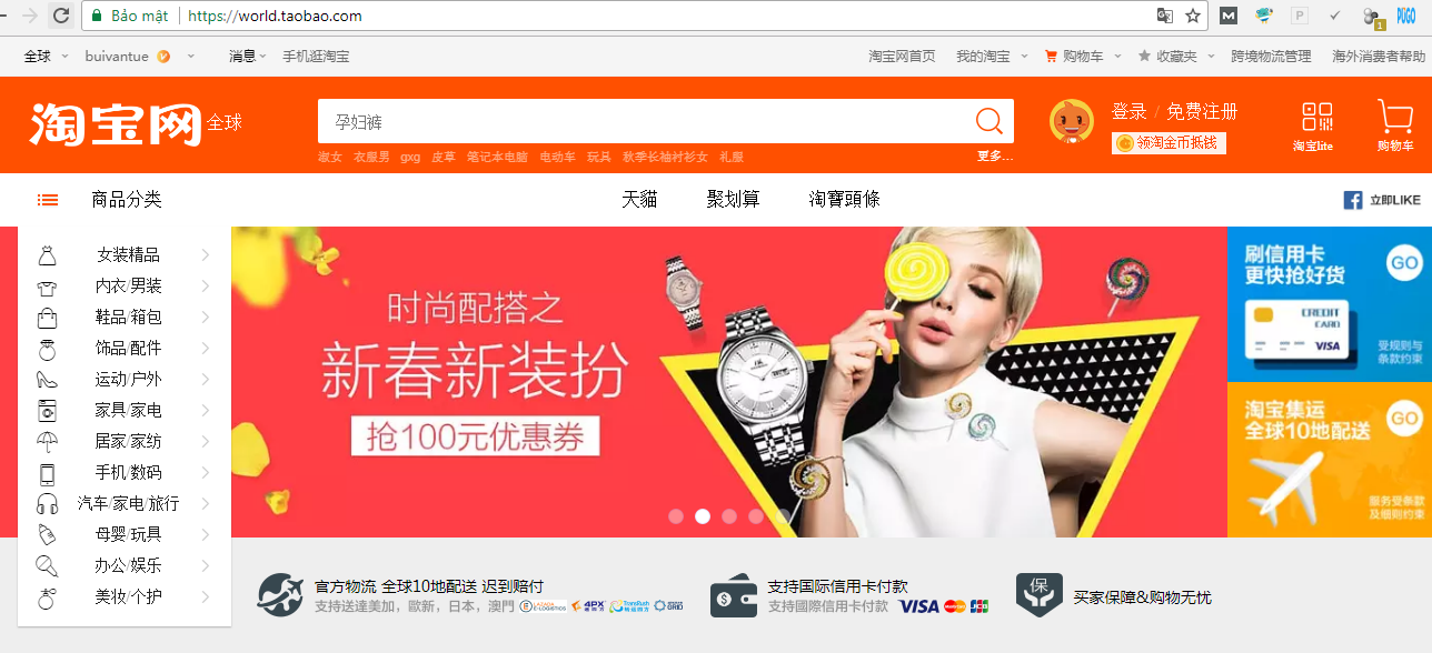 Taobao là một trong những website bán hàng trực tuyến của Trung Quốc, nơi cho phép bạn mua hàng và thanh toán trực tuyến. Đây là website bán lẻ thuộc tập đoàn lớn nhất Trung Quốc Alibaba.