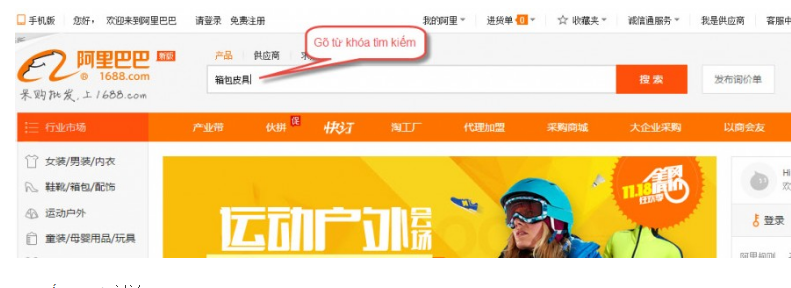 Bước 1: nhập từ khóa sản phẩm bạn muốn tìm kiếm vào thanh tìm kiếm ở trên cùng của trang web taobao, 16888 rồi nhấn enter.