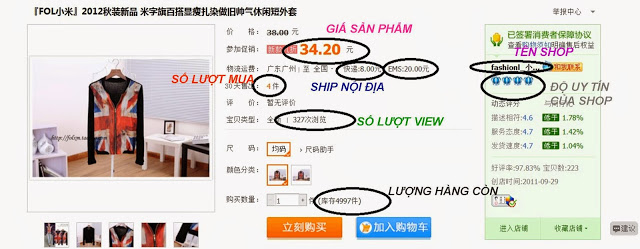 Bước 3: click vào sản phẩm muốn chọn và xem tên shop, giá cả, giá ship nội địa và xếp hạng đánh giá của người mua, để từ đây đưa ra quyết định mua sản phẩm nào.